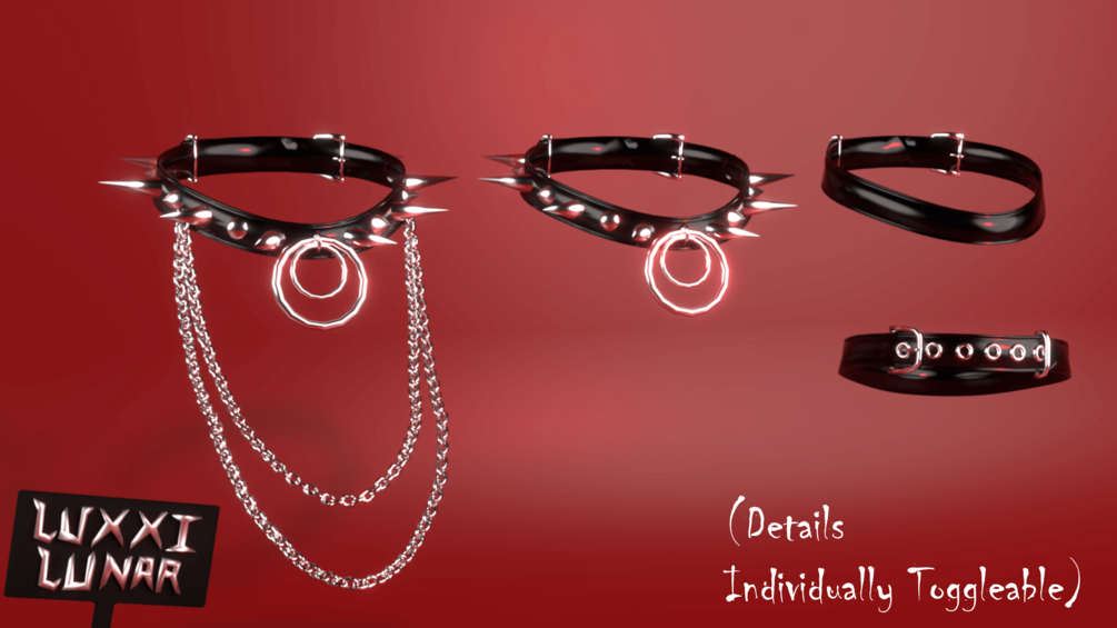 Goth Spiked Collar w/Chains - 23 Colours - Customizable - Details Toggleable - [ASSET]