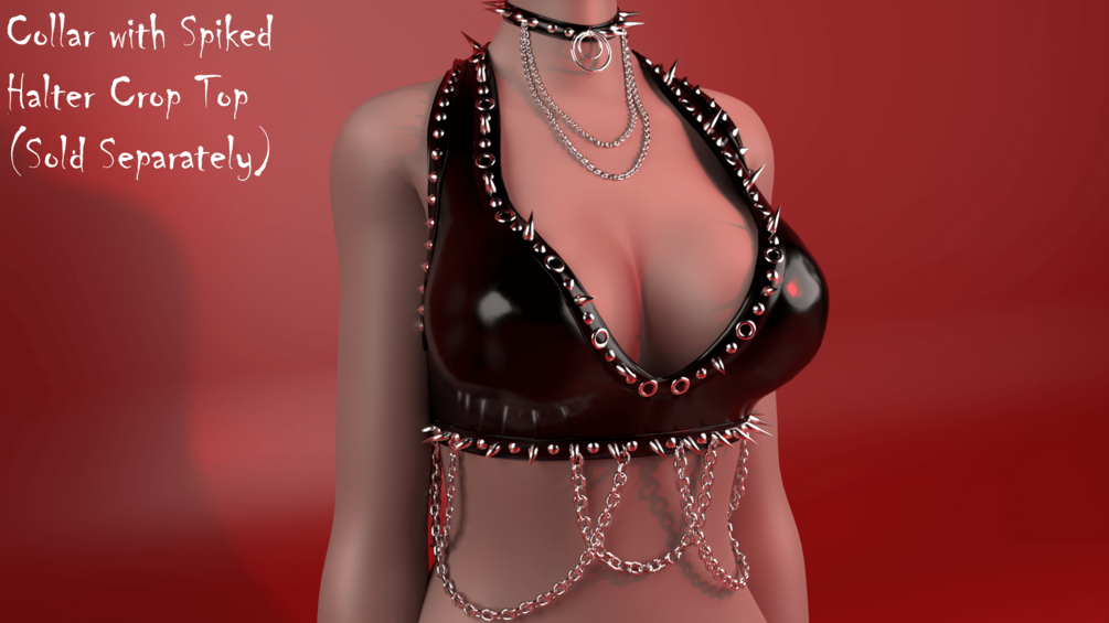 Goth Spiked Collar w/Chains - 23 Colours - Customizable - Details Toggleable - [ASSET]